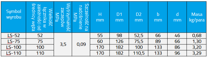 Łączniki ssawne przeznaczone są do połączeń szybkozłącznych odcinków węży ssawnych ze sobą lub łączenia ich z nasadami ssawno-tłocznymi.