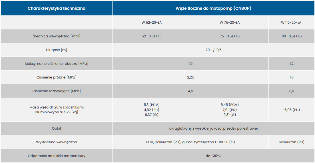 Pożarnicze węże tłoczne do pomp, motopomp i autopomp znajdują swoje zastosowanie w inżynierii wodnej i lądowej, rolnictwie, górnictwie, budownictwie oraz jako wyposażenie służb pożarniczych, ratowniczych i leśnych.
